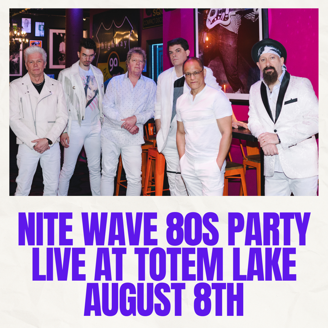 The Village at Totem Lake Thursday, August 8, 2024 7:00 PM 8:30 PM 19:00 20:30 The Village at Totem Lake (map) Google Calendar ICS Nite Wave Live at the Village at Totem Lake 7-830pm FREE SHOW